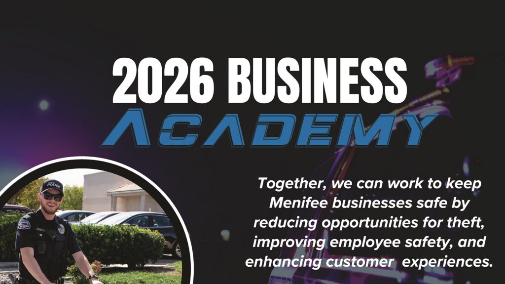 Together, we can work to keep Menifee businesses safe by reducing opportunities for theft, improving employee safety, and enhancing customer experiences.