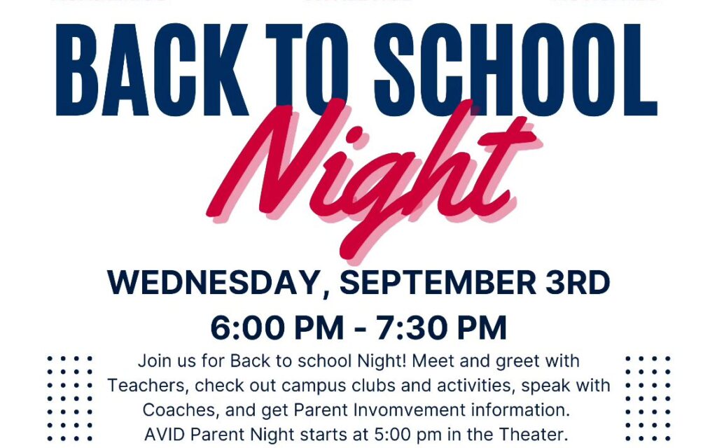 PLUS: AVID Parent Night kicks things off at 5:00 PM in the Theater — don’t miss it!