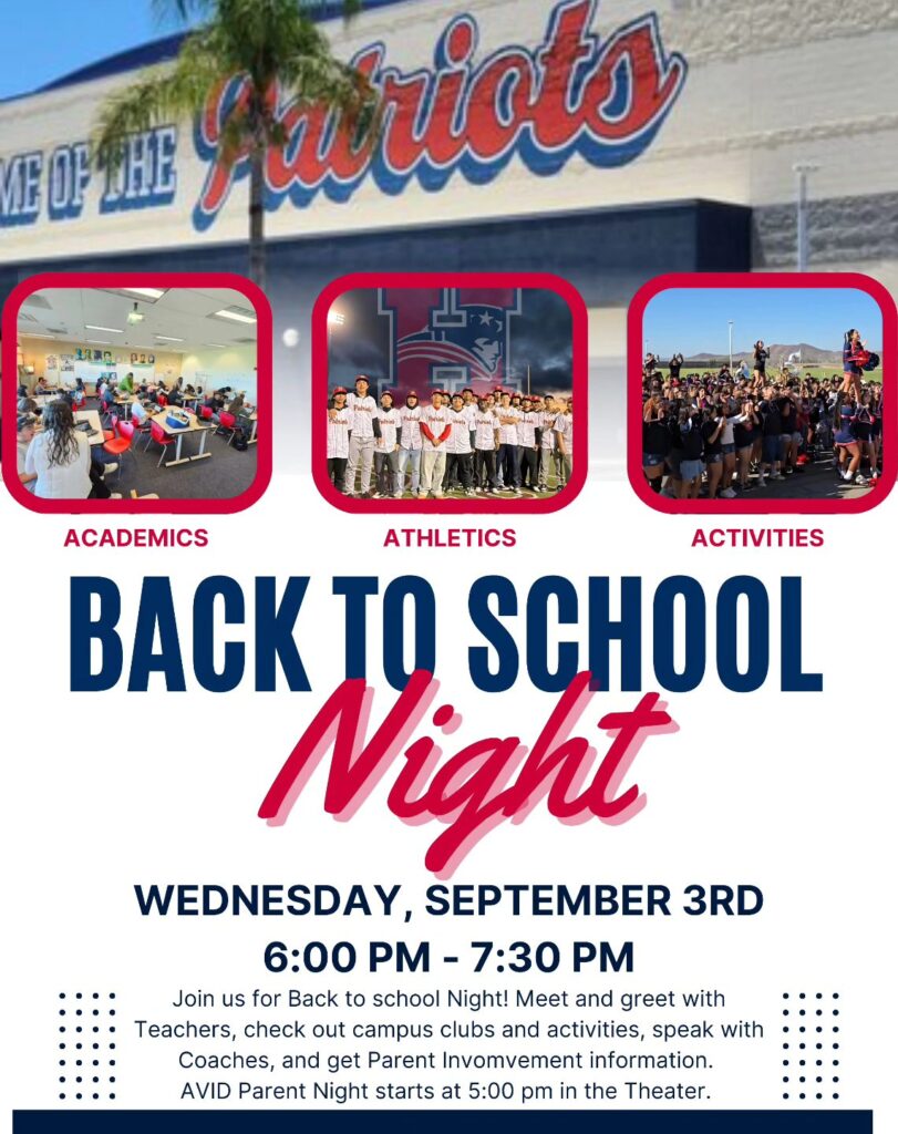 Come meet your student’s teachers, explore clubs and activities, chat with coaches, and learn how you can get involved as a parent!