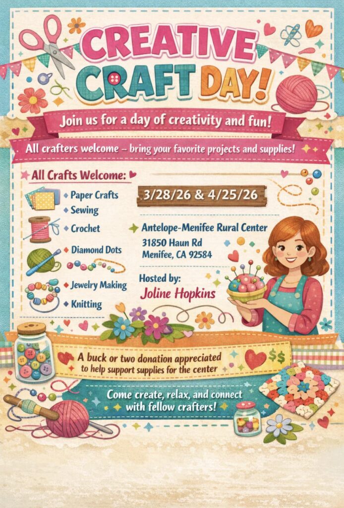 | Event Tags: | 55+ in Menifee, city of menifee, community calendar, hellomenifee, menifee, Menifee CA, Menifee calendar, menifee california, Menifee Events, Menifee things to do, Things to do in Menifee |