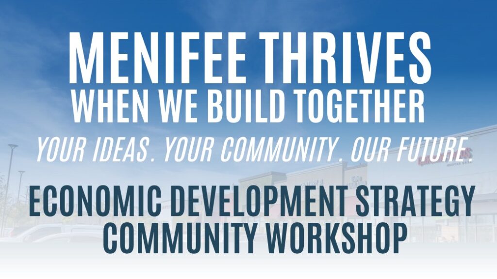 Menifee’s future is built together. This interactive workshop is your chance to share your voice and help shape the city’s economic development strategy. Whether it’s job creation, business attraction, or strengthening local businesses, your perspective matters.
