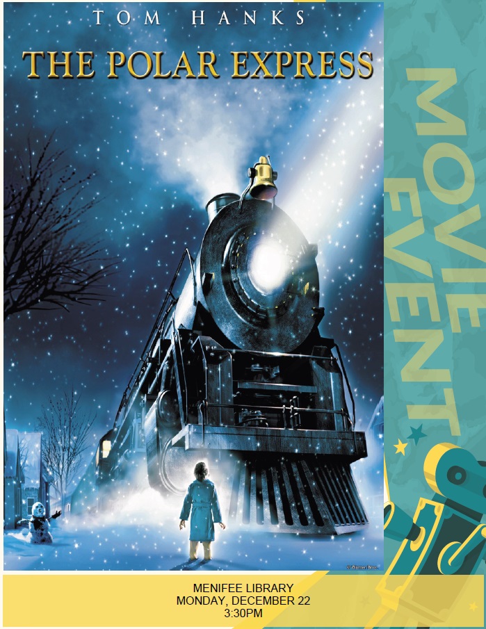 Come join Menifee Library on December 22nd at 3:30pm for a family holiday movie screening! Call the library for more details!