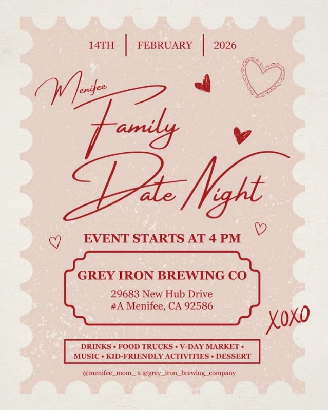 Join @grey_iron_brewing_company & @menifee_mom_ for Family Date Night – a heart-filled evening of sips, snacks, and smiles. 💝
