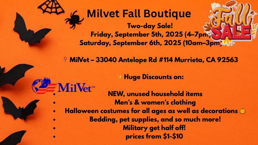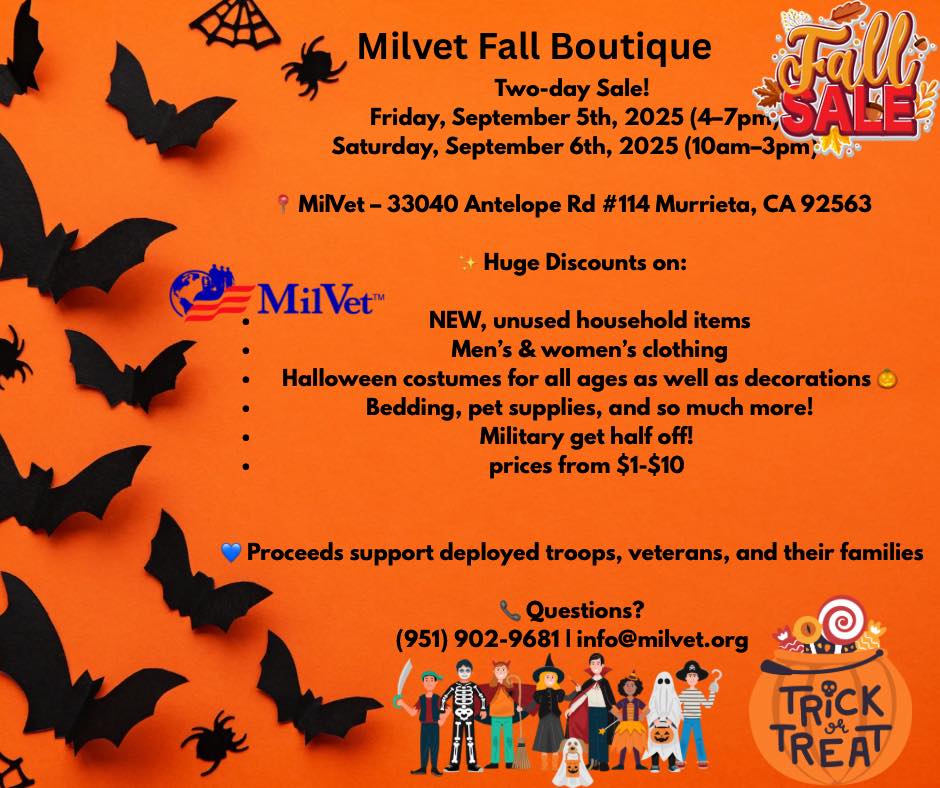 Get ready for spooky savings at the MilVet Fall Boutique!