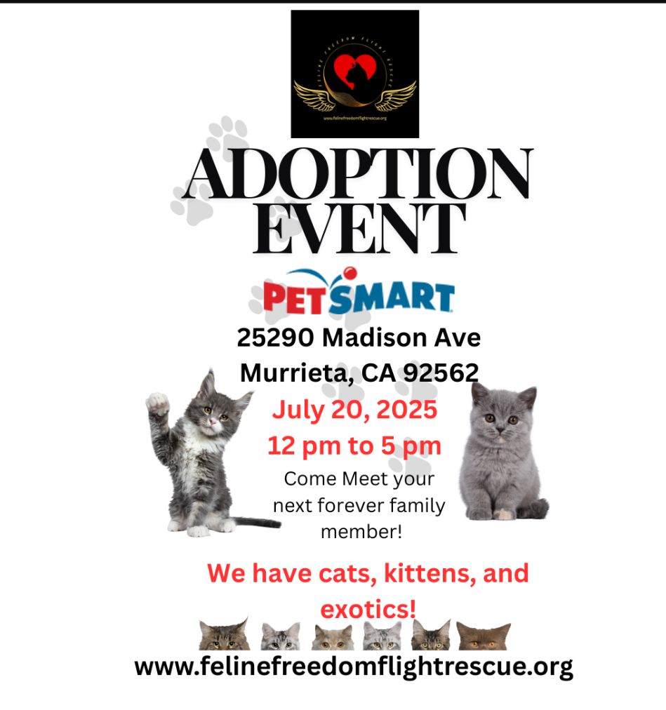 Come join us next Sunday July 20th at Murrieta PetSmart to see if you will have found the purr-love of your life!