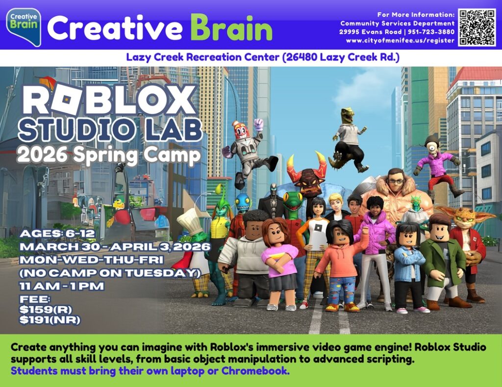 REGISTER NOW! Creative Brain: Roblox Studio Lab – Ages: 6-12 (4 Week Session)