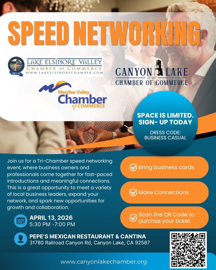 Join us for a Tri Chamber Speed Networking event, where business owners and professionals come together for fast paced introductions and meaningful connections. This high energy networking experience is designed to help you meet a wide variety of local business leaders, expand your network, and spark new opportunities for growth and collaboration.
