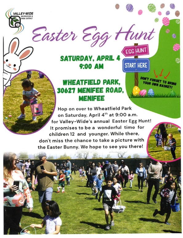 Valley-Wide Recreation & Park District’s FREE Menifee Easter Egg Hunt