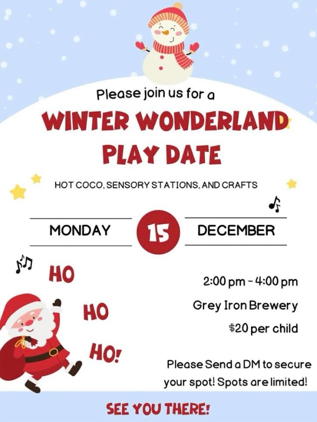 Plus – everyone who attends will receive an exclusive coupon for parent’s night out at Grey Iron Brewing… perfect for sneaking in a cozy date night after holiday shopping!