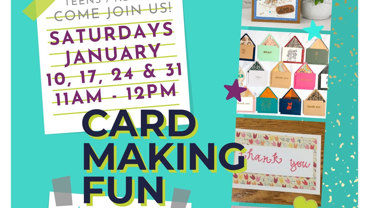 Menifee Library - La Piedra 28798 La Piedra Rd., Menifee, CA, United StatesAdults and Teens! Come join Menifee Library on Saturdays from 11:00am - 12:00pm in the Community Room for our Card-Making Fun program! All materials will be provided!