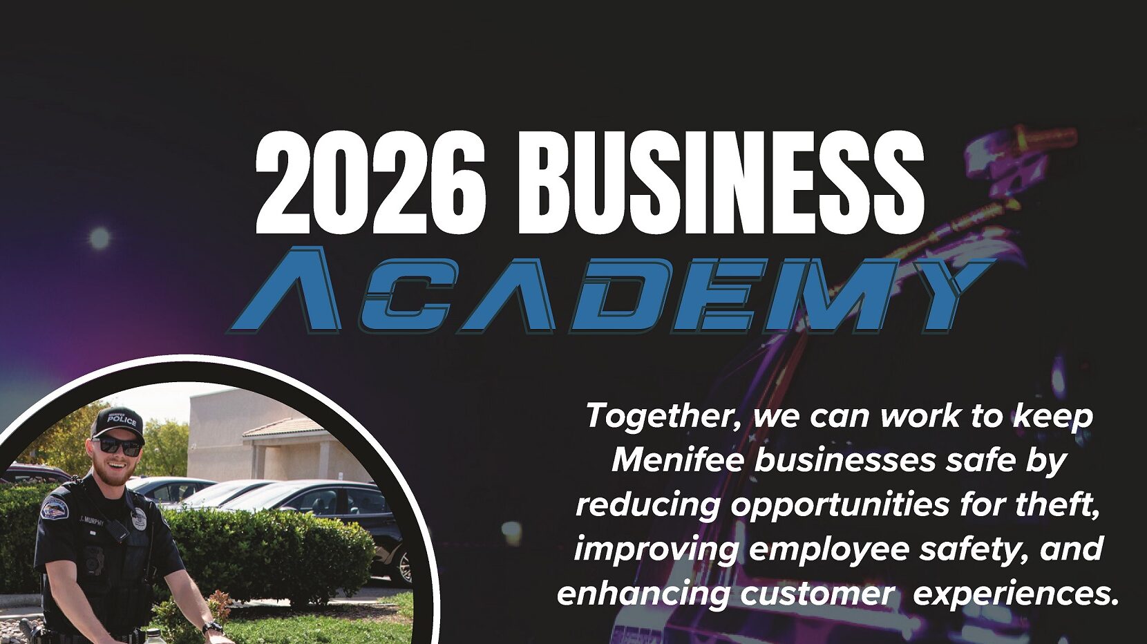 Together, we can work to keep Menifee businesses safe by reducing opportunities for theft, improving employee safety, and enhancing customer experiences. Topics Covered: Crime Prevention Through Environmental Design Business Safety Code Enforcement for Businesses Employee Safety This series is best for brick & mortar businesses. Please limit 2 attendees per business.