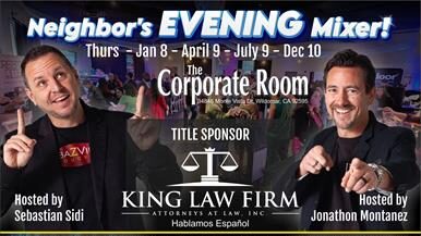 Neighbors Quarterly Evening Mixer — Sponsored by KING Law Firm, Attorneys at Law, Inc. Get ready for an unforgettable evening of networking, entertainment, and community connection at the Neighbors Quarterly Evening Mixer! Hosted by Sebastian Sidi and Jonathon Montanez, this popular quarterly event brings together entrepreneurs, business owners, and community leaders from across Southwest Riverside County for a night […]