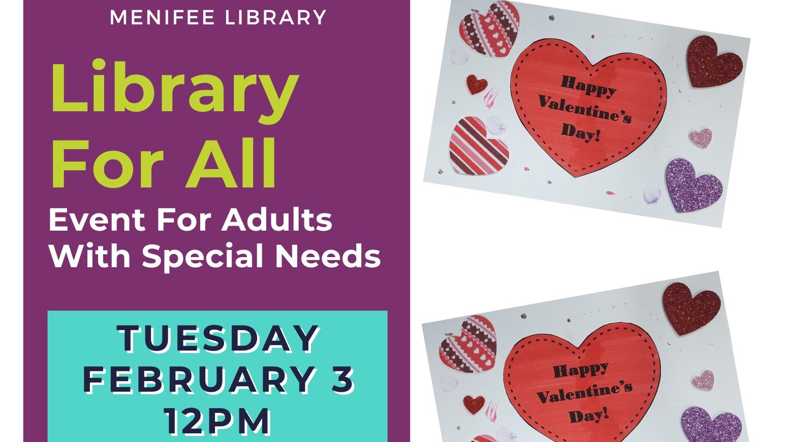 Adults with special needs come join Menifee Library in the Community Room on Tuesday, February 17th, at 12:00pm for a fun afternoon of Board Games and Coloring!