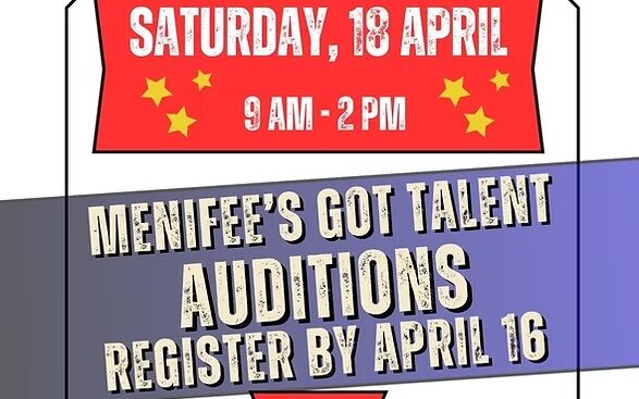 MENIFEE'S GOT TALENTAUDITIONS A talent show for all agesRegister and Submit your Audition before April 16, 2026!LIVE AUDITIONS - APRIL 18, 2026LIVE SHOW- May 29, 2026 For more information, please visit: Menifee's Got Talent Auditions | Arts Council Menifee |