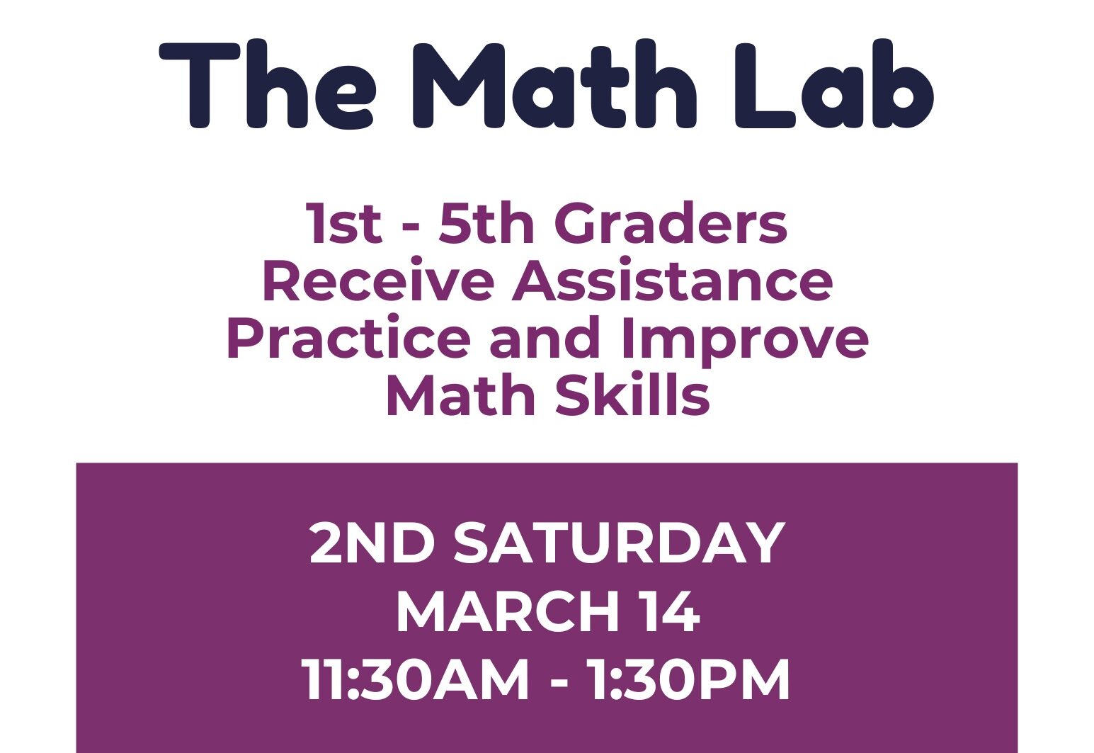 Come join Goshen Prep on March 14th, from 11:30am - 1:30pm, in the Opportunity Room. 1st through 5th graders can come practice and improve their math skills with assistance.